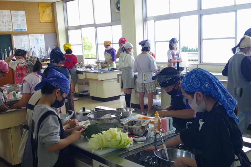今週、5年は調理実習で「サラダづくり」を行いました。初等部には家庭科室がないため、中等部の家庭科室で実習をしました。すべての野菜に火を通して、きれいに盛り付けができていました。