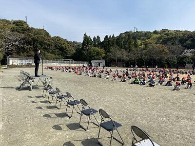 4月7日(木)に、運動場で令和4年度の新任式と始業式を行いました。
