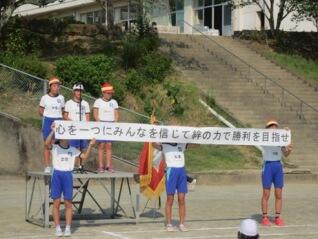 今年の運動会のスローガンは、「心を一つにみんなを信じて絆の力で勝利を目指せ」です。