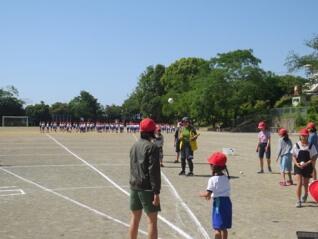 運動会に向けて、全校体育があります。入場行進や開会式の練習、全校リレーの練習などが行われます。