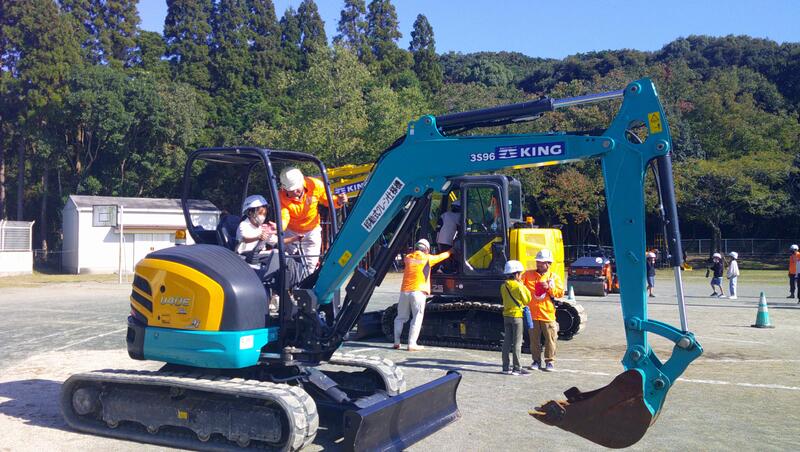 前半は、体育館で土木に関する説明があり、後半は運動場で実際に体験学習をしました。重機を操作したり、ブロックで橋をつくったり、測量をしたりと、普段はできない体験学習をすることができました。