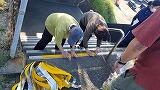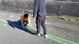 奉仕作業が終わった後に、PTA役員と新・旧の生徒会執行部の生徒の皆さんと保護者が坂道の白線引きと階段の滑り止めの貼り付け作業を行ってくれました。生徒の安全のために、一生懸命に取り組んでいただきました。