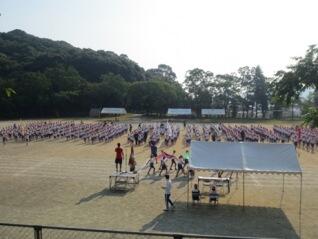 運動会に向けて、全校体育があります。入場行進や開会式の練習、全校リレーの練習などが行われます。