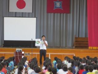 子供たちが楽しく充実した夏休みを過ごしてほしいことを生徒指導主事の先生も、話してくださいました。1学期終業式に話した「こうゆうすいか」の話や、「いのちのまつり」の動画を通して、命の大切さを教えてくださいました。