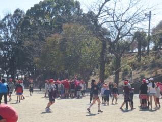 昼休みの運動場では、いつも子どもたちと共に先生たちも一緒に遊んでいます。今月は長縄月間ということもあり、いろいろな場所で長縄をしている様子が見られます。立春まであと少しですが、やっぱり寒い日は続いています。しかし、元気いっぱい運動場で体を動かすと、心も体もぽっかぽっかになります。