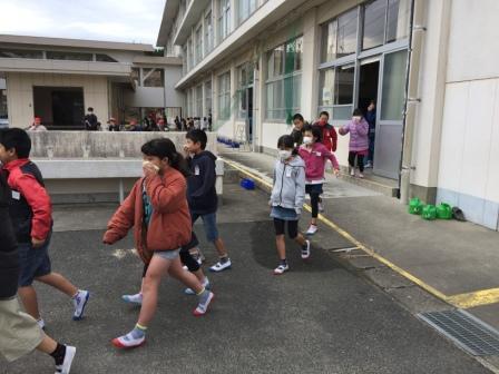 避難開始から全児童避難の確認まで約4分で、機敏に行動できました。東日本大震災のときの、いわゆる「釜石の奇跡」は、奇跡ではなく、日頃の避難訓練の成果だったという話が校長先生からあり、訓練を真剣に繰り返すことの大切さを再認識しました。