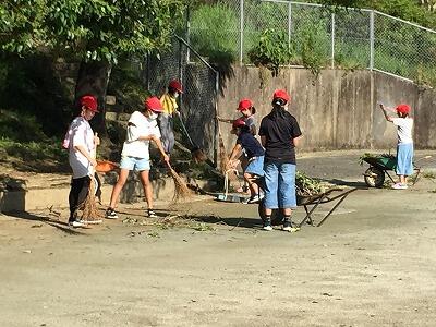 その他、運動場には周辺の木々の枝葉が大量に散っていました。朝から、5・6年生が熱心に作業をしてくれて、大変きれいになりました。さすが高学年マンパワーです!