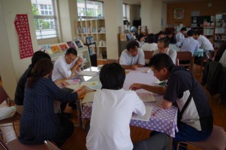 初等部でも中等部でも、「授業改善の根拠」とするために、実施した各種学力調査の結果の分析を行っています。下の写真は、どの問題の正答率が低いのか、問題と教科書との関連は、学習指導要領にはどう書かれているのか、等を分析し、どのような指導を行っていかなければならないかという対策を協議しているところです。