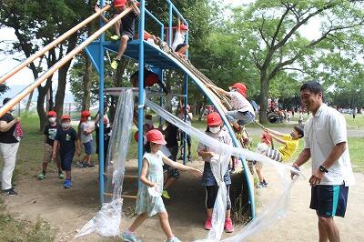 今日も暑い日でした。でも、昼休みは運動場でたくさんの児童が元気に遊んでいました。先生も、楽しそうに・・・。