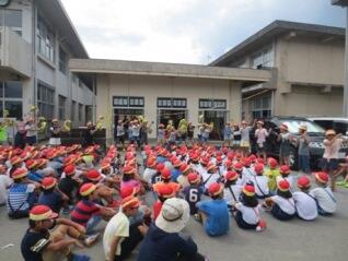 避難訓練では、消防署の方々にもおいで頂きました。消防隊員の方は、大王谷の子どもたち全員が避難するのに要した時間は、10分ほどだったとおっしゃっていました。