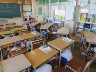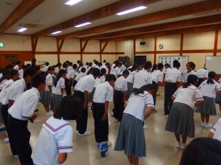 本校では、小中合同で避難訓練(地震)を行っています。