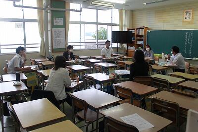 市教育委員会、教育事務所の先生方に来校していただき、学校施設や授業を見ていただいた後、たくさんの指導・助言をいただきました。