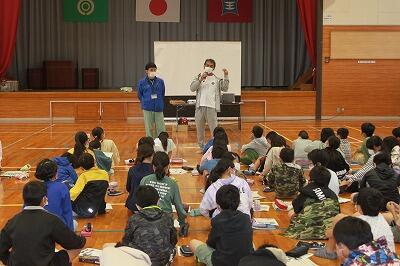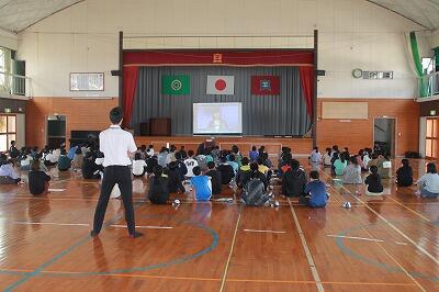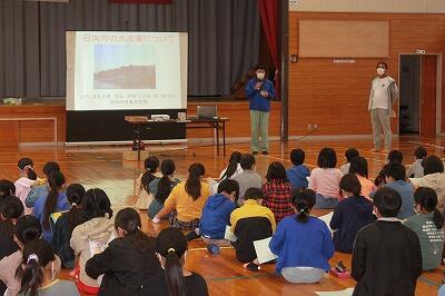 日向市の水産業について、講師を招いてお話をしていただきました。マグロ延縄の歴史、漁のやり方、マグロの種類など詳しく説明していただきました。4年生は、講師の話を真剣に聞いていました。たくさんの質問もしていました。