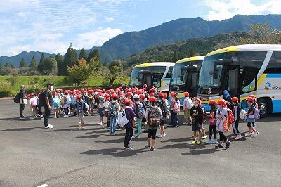 昨日の雨が嘘のようです。晴天になった「秋の遠足」です。1年生は、「心の杜公園」2年生は、「石峠レイクランド」3年生は、「牧水公園」4年生は、「県総合博物館・科学技術館」にバスで出かけました。