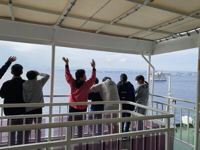 今、桜島港に着き、カーフェリーに乗り鹿児島港に向かっています。鹿児島港に着いたら鹿児島水族館に向かいます。