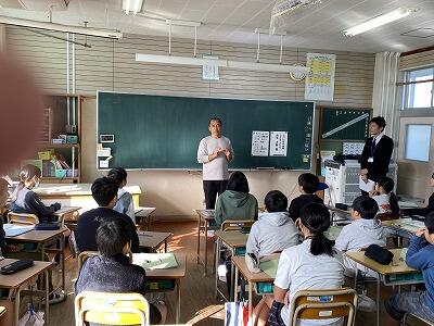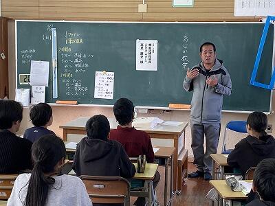 11月8日(金)の5校時に、4年生がゴミについての学習をしました。講師として、堀一方区長の片寄卓男さんと曽根区長の黒木政文さんにお越しいただき、それぞれの地区でのゴミ出しについての取組や課題など、詳しくお話ししていただきました。自分が住んでいる地区の話でしたので、子どもたちも真剣に聞いていたようです。質問もたくさん出て、有意義な時間となりました。