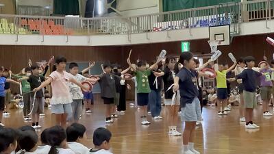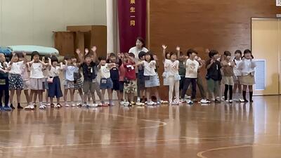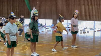 10月4日(金)の1校時に、1年生が運動会の玉入れの際に踊るひょっとこ踊りの練習がありました。その講師として、永江地区でひょっとこ踊りを指導されている黒田さんと葛西さんがおこしくださいました。暑い中、体育館で指導してくださり、子どもたちもとっても上手になりました。本番が楽しみです。黒田さん、葛西さん、お忙しい中ありがとうございました。