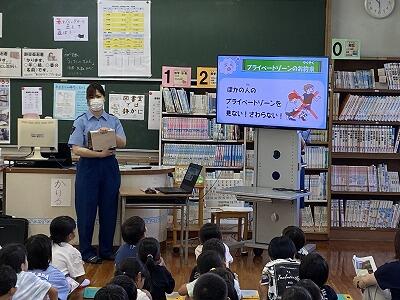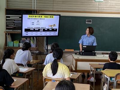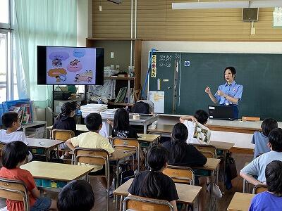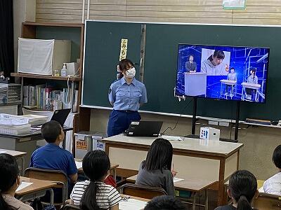 7月1日(月)から3日(水)までの3日間、全学年全学級で非行防止教室を実施しました。内容は、1年生が「万引きについて」、2年生が「性被害について」、3~5年生が「情報モラル・メディアコントロールについて」、6年生が「薬物乱用について」でした。日向警察署と延岡警察署から、スクールサポーターを含め6名の方が来校され、指導してくださいました。子ども達は、真剣に話を聞いたり、映像を見たりしていました。この非行防止教室で学んだことを、今後の生活に少しでも生かしてほしいと願っています。