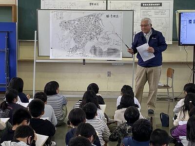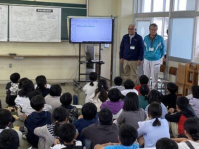 9月17日(火)と18日(水)の2日間、4年生が社会の授業で、市の防災推進課から2名の講師を招聘し、防災教育を行いました。地震・津波、大雨被害等、自然災害について詳しいお話を聞いたり、説明に対する質問をしたりしながら、有意義な1時間を過ごすことができました。教科書を使って学ぶことも大切ですが、その道の専門の方の話を聞いて学ぶことも大切であると感じました。学んだことを、今後の生活に是非生かしてほしいと思います。