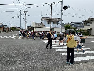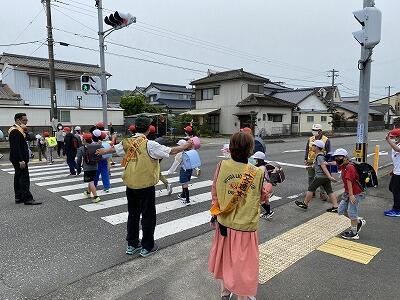 市のライオンズクラブの方々が、下校時の見守りをしてくださっています。