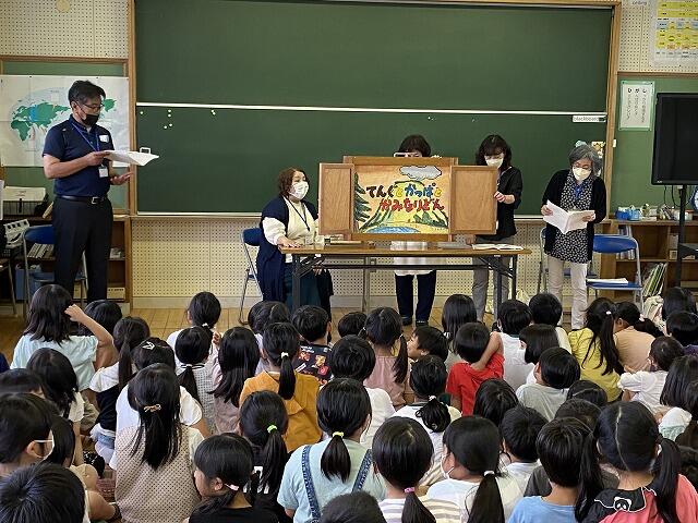 6月1日(木)の昼休みに、読み聞かせボランティア「ひだまりの会」による読み聞かせがありました。「ひだまりの会」による読み聞かせは、コロナの影響で3年間ほど実施できませんでした。本年度は、学年ごとの朝の読み聞かせと毎週木曜日(昼休み)の読み聞かせを予定しています。子どもたちも楽しみにしていて、この日は、教室に入らないくらいたくさんの子どもたちが参加しました。