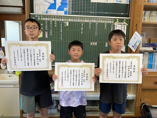 第36回国富町ふれあい短歌大会で入賞した3名の児童です。