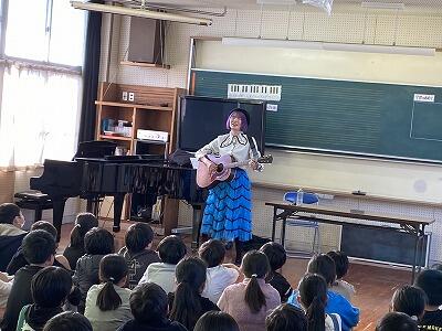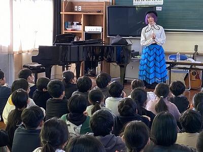 12月8日(金)に、本校出身のシンガーソングライター・小説家の黒木渚さんが、本校に来校されました。ワイワイテレビの取材が目的で、本校のいろいろな場所で撮影が行われました。5年生への講話や歌の披露も撮影の中に入っていました。