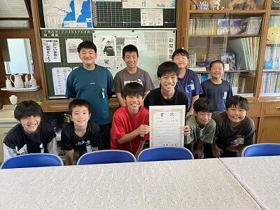 7月8日(月)の昼休みに、日知屋トリッピーズ(ドッジボールチーム)の5・6年生が、県大会敢闘賞の報告に来てくれました。3勝1引き分けの好成績だったことや、大活躍した友達のことなど、詳しく話をしてくれました。