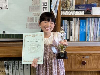 3年生の女児が、延岡地区のピティナ・ピアノコンペティションにおいて、入選したと報告に来てくれました。夕刊デイリー新聞社賞ということです。素敵なトロフィーも見せてくれました。本当におめでとうございます。