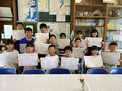 9月5日(木)に、第37回国富町ふれあい短歌大会で入賞した10名の児童を校長室で表彰しました。身近な生活場面の中から感じたことを歌にしていて、どれもすばらしい短歌でした。これから、本校の児童にも紹介していきたいと思っています。10名の皆さん、おめでとうございます。