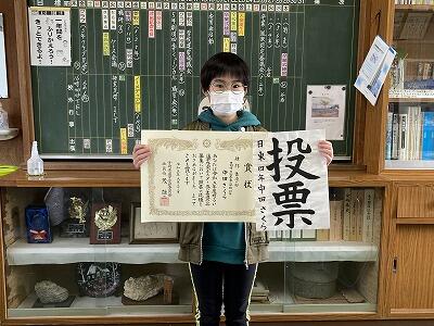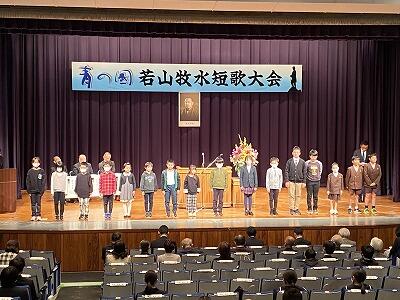 12月17日(日)に、第13回青の國若山牧水短歌大会表彰式がありました。本校から、最優秀賞1名(4年児童)、佳作2名(6年児童)が表彰されました。3名の皆さん、おめでとうございます。