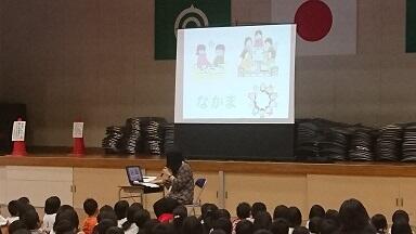 全校の会がありました。今日は、特別支援教育について、田中ゆかり先生のお話でした。誰でもみんな得意なことがあるように苦手なこともあります。それをお互いが認め合って仲良く過ごしていくことが大事だと言うことがよく分かったと思います。