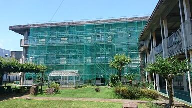 各学級に冷房を取り付けるための工事が始まっています。夏休みになり、足場を3階まで組んで大工事になっています。9月に間に合うといいなあ~と思っています。業者の皆さん、がんばってください。