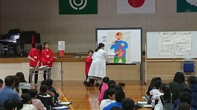 11月10日(日曜日)にオープンスクールとPTAバザーが行われました。1~3校時までは授業を見ていただきました。その中で、3年生は日向市栄養士会による食育出前講座を行いました。
