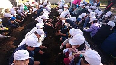 今日は、2年生が大事に育ててきたサツマイモのいもほりがありました。土を少しずつほって、おいもを見つけると大きな歓声が上がっていました。みんなで協力しながら、楽しいいもほりができました。今年は、豊作でした。