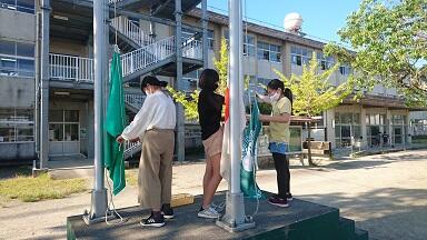 朝、6年生は当番で、国旗と市旗と校旗を揚げてくれています。