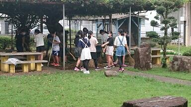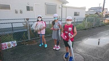 ゴミ拾いボランティア隊は、学校周辺の道路や安之神社のゴミを