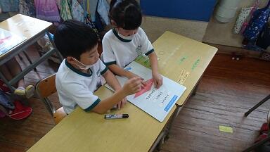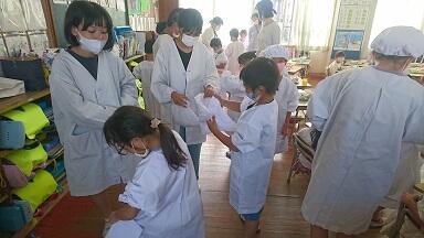 1年生でしたが、ペアで上手に給食の手順を考えていました。