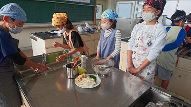 自分たちのつくった料理は格別で、みんなニコニコ顔でした。