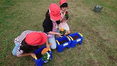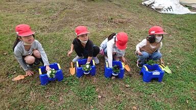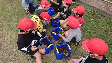 さっそく、1,2年生が一人一鉢として植えさせていただ