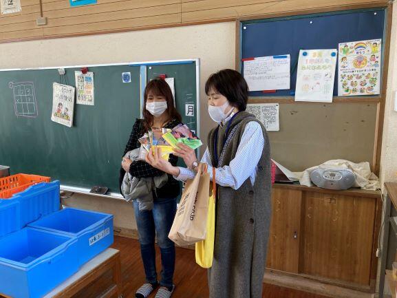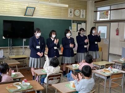 富島高校生14名が日知屋東小学校に来て自分達の考えたメニュー「トミ