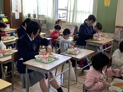 ートサンド」を紹介し、1年生と一緒に食べました。1年生本当においしそうに
