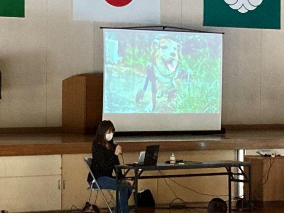 今日は、「いのちのはうす」の山下由美さんらを学校に招いて保護活動の
