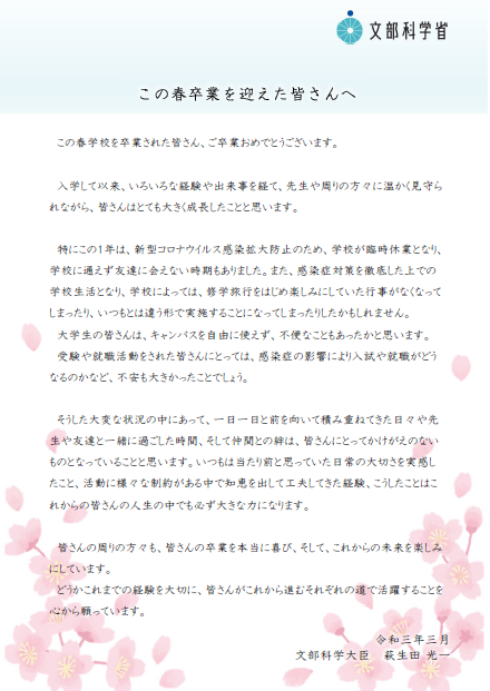 いろな制限がありましたが、卒業生108名を送り出すこと