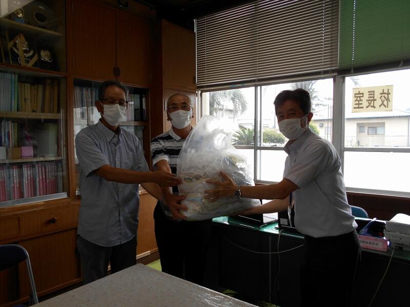 柏田副会長が来校され、雑巾を寄贈していただきました。特に