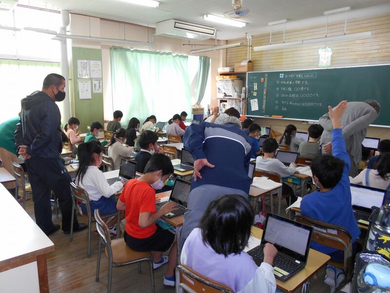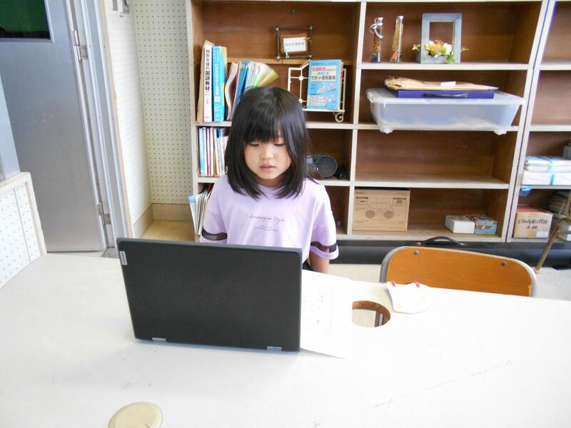 3年生が、総合的な学習の時間にタブレットを使って、ローマ字入力の仕方を