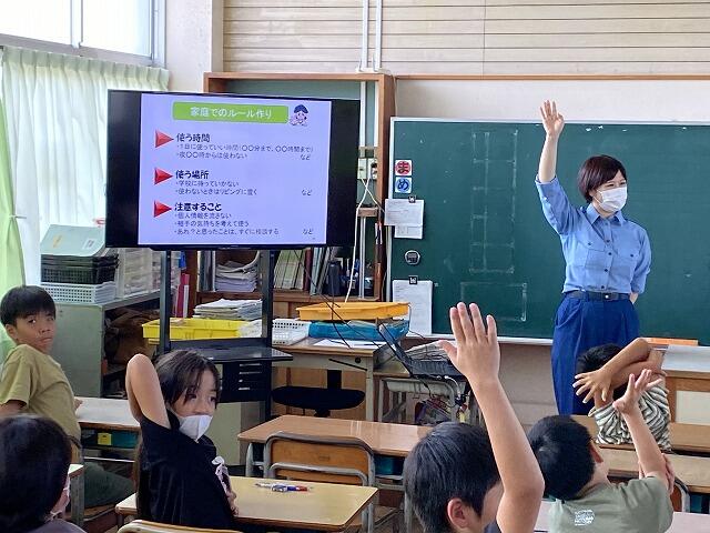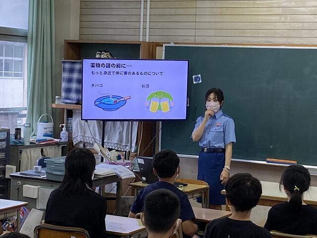 7月3日(月)から5日(水)までの3日間、全学年全学級で非行防止教室を実施しました。内容は、1・2年生が「万引きについて」、3~5年生が「情報モラル・メディアコントロールについて」、6年生が「薬物乱用について」でした。日向警察署と延岡警察署から、スクールサポーターを含め7名の方が来校され、指導してくださいました。子ども達は、真剣に話を聞いたり、映像を見たりしていました。この非行防止教室で学んだことを、今後の生活に少しでも生かしてほしいと願っています。