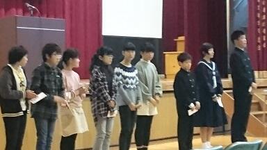 本校からは、平田鈴さん、木村瑠音さん、川﨑結衣さんの3人が「将来の自分」について発表してくれました。デザイナー、薬剤師、看護師など自分の将来なりたい職業についてしっかり自分の言葉で言うことができました。すばらしい発表でした。