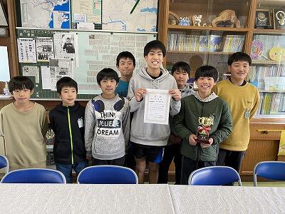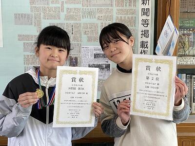 12月15日(日)に実施された第11回ひょっとこ駅伝大会ですばらしい成績を収めた2名の児童(5年女児)を校長室で表彰しました。2人ともチームの一員として、入賞に大きく貢献したようです。すばらしいです。今後も、陸上競技に対し、意欲的に取り組んでほしいと願っています。