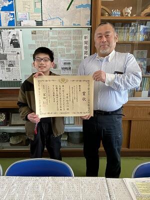 6年児童とその保護者が、国土交通省「インフラメンテナンス大賞」で優秀賞を受賞したことを、報告に来てくださいました。